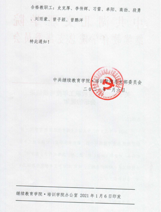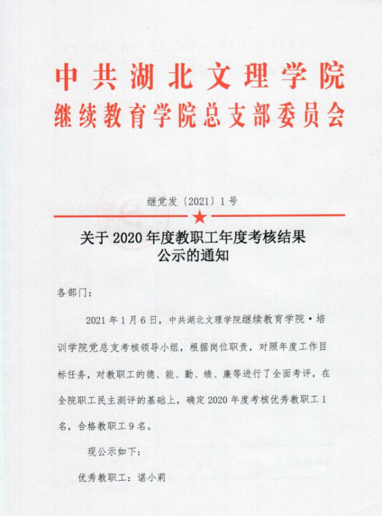 关于2020年度教职工年度考核结果公示的通知