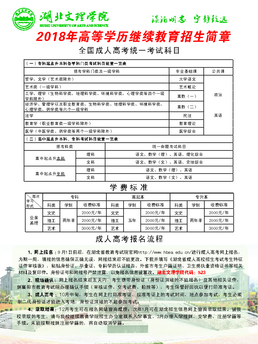 澳门十大电子正规游戏网站2018年高等学历继续教育招生信息