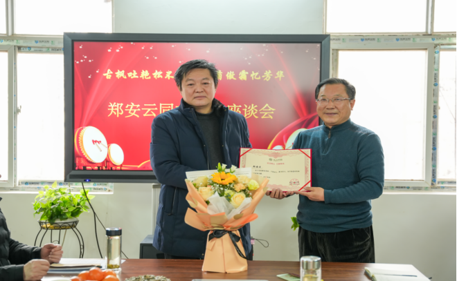 会上,院长张来斌为郑院长颁发荣休证书和纪念牌,教职工代表詹瑞瑾为郑院长献花并合影留念。